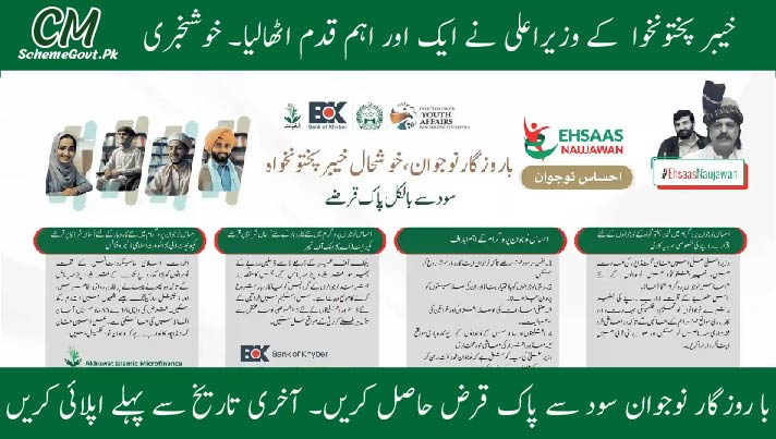 The Ehsaas Naujawan Programme, a KP government-BOK collaboration, provides markup-free loans to foster youth-led startups. Aimed at ages 18-35, it supports innovative ideas in IT, healthcare, tourism, and green energy.